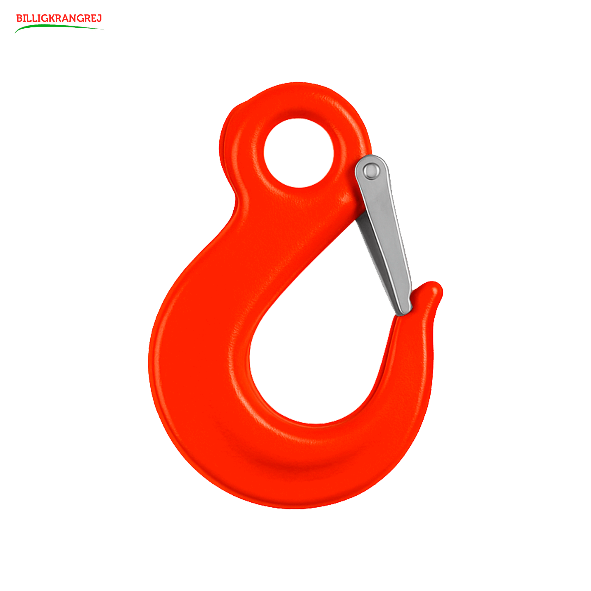 Lastkroge med øje og pal er væsentlige løfteværktøjer inden for industrielle løfteoperationer. Disse kroge er designet til at lette løftning og fastgørelse af tunge genstande sikkert og pålideligt. I den ene ende har de et øje, der tillader fastgørelse til løfteudstyr såsom kraner eller taljer. Den modsatte ende er udstyret med en pal, en forhøjning, der forhindrer løftestroppen eller kæden i at glide af krogen under løftning. Disse kroge fremstilles normalt af holdbare materialer som stål eller legeringer for at sikre deres styrke og holdbarhed. De findes i forskellige størrelser og kapaciteter for at imødekomme forskellige løftebehov og -krav. Anvendelsesområder og anvendelsesmuligheder for selvlukkende løftekroge: