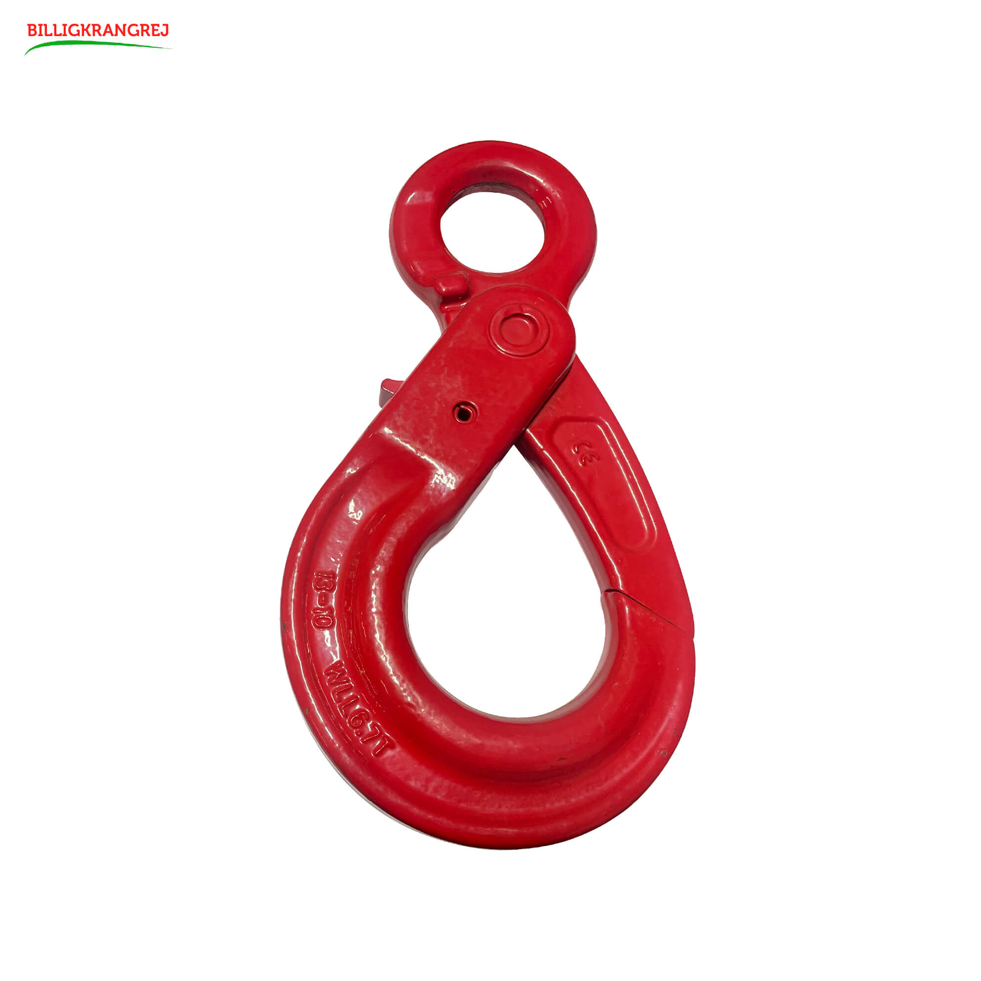 En selvlukkende krog, er en type krog designet til at fastgøre og løfte tunge genstande med sikkerhed og pålidelighed. Denne krog har en integreret mekanisme, der automatisk låser sig, når belastningen er blevet hævet, hvilket forhindrer genstanden i at falde eller løsne sig utilsigtet.