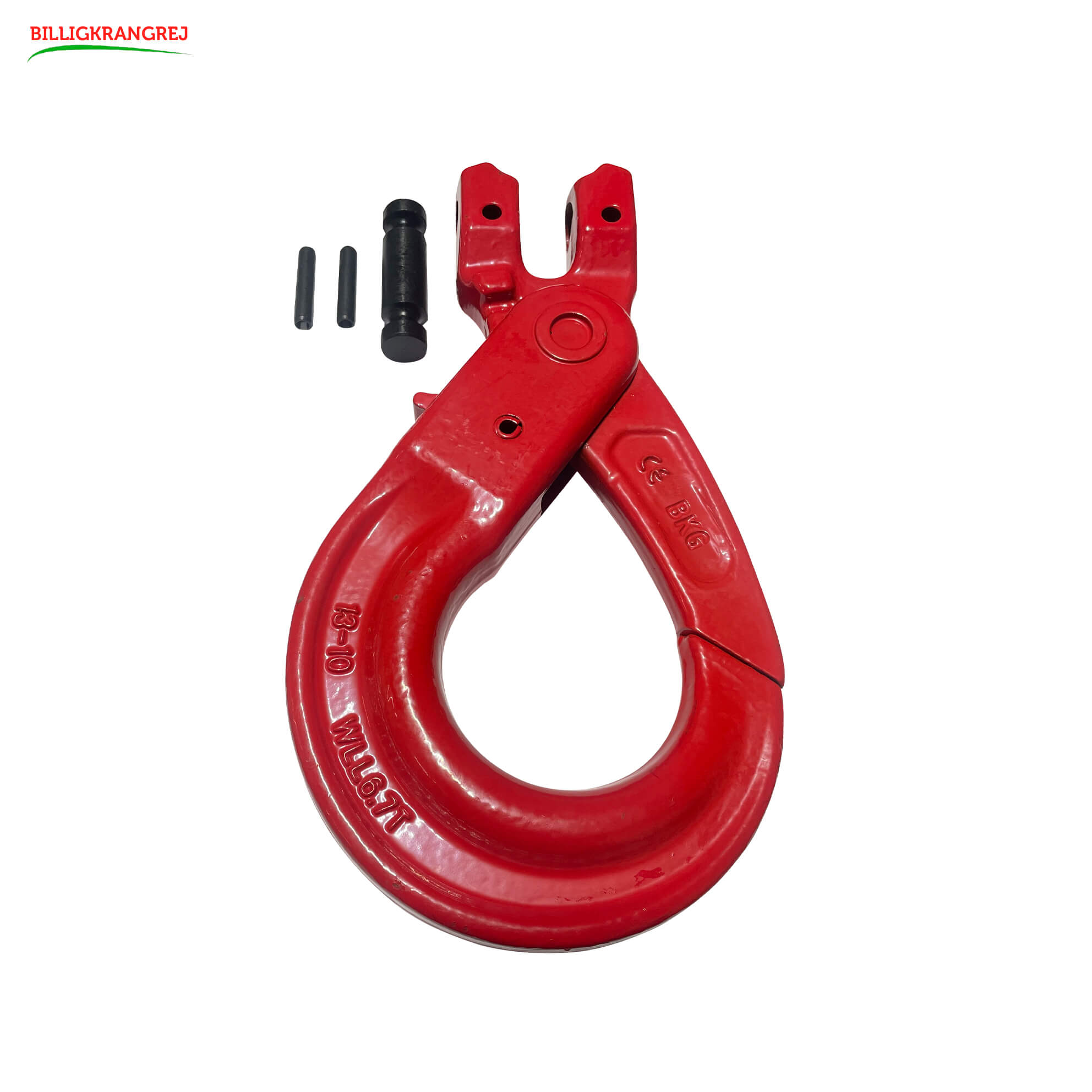 En selvlukkende krog, er en type krog designet til at fastgøre og løfte tunge genstande med sikkerhed og pålidelighed. Denne krog har en integreret mekanisme, der automatisk låser sig, når belastningen er blevet hævet, hvilket forhindrer genstanden i at falde eller løsne sig utilsigtet.